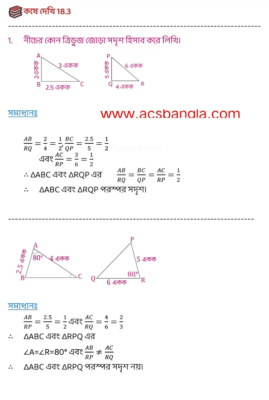 সাদৃশ্যতা / কষে দেখি - 18.3 / class - 10 / Kose dakhi 18.3 / WB Madhyamik Math solution